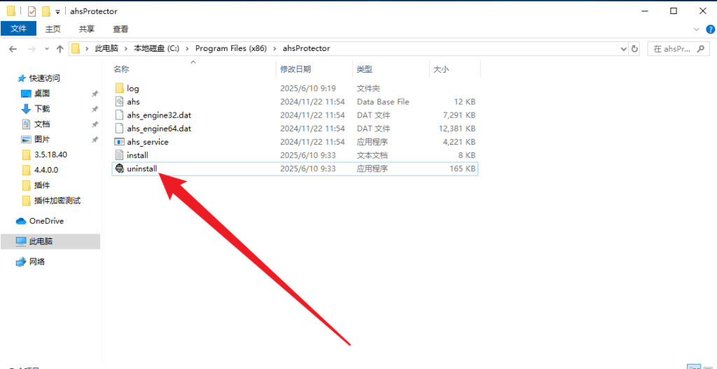 在C:\Program Files (x86)\ahsProtector\路径下找到uninstall.exe,双击运行将AHS反黑引擎卸载。