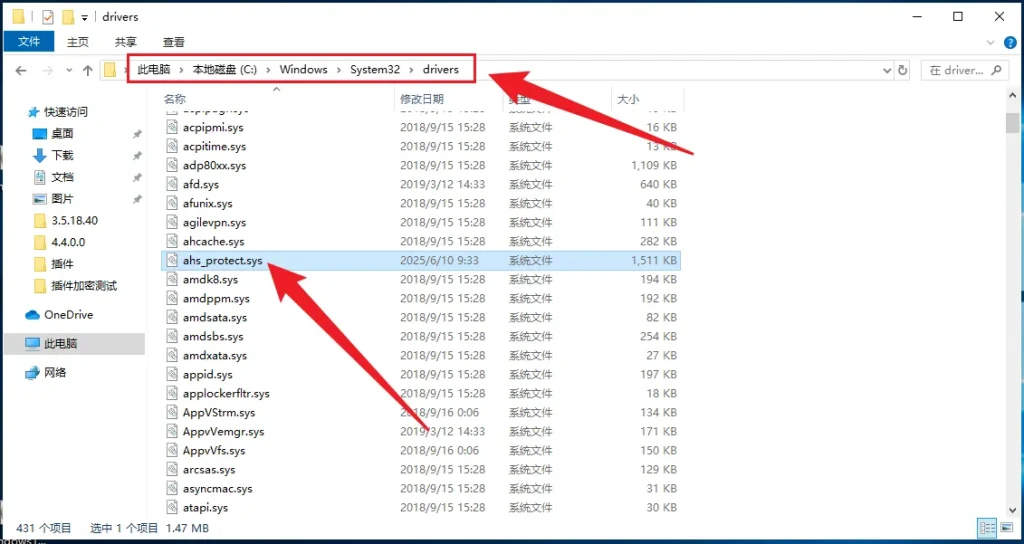 卸载完成后重启电脑,重启完后在C:\Windows\System32\drivers\目录下找到ahs_protect.sys,将其删除。必须重启,否则删除会提示被占用。